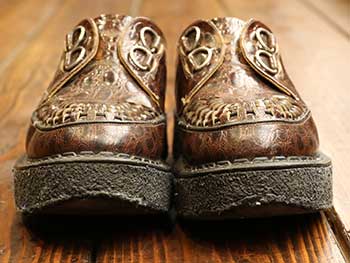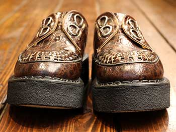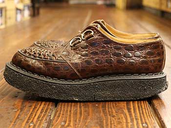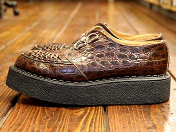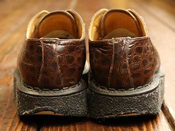 珍しいブラウンのクロコ(型押し)レザーのラバーソールです。
